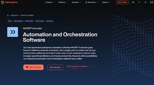 Beta Systems ANOW! Automate ist eine moderne, Cloud-native Plattform für Workload-Automation und Batch-Scheduling, die speziell für große Unternehmen in hybriden und Multi-Cloud-Umgebungen entwickelt wurde.